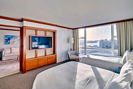 Located on 750 feet of private beach along the Atlantic Ocean, Carillon Miami Beach is located in Miami Beach, Florida. Spa services from neuromuscular therapy to body rituals, skin care treatments, and pedicures as well as a salon are offered. Bathrobes and slippers add comfort to each suite. A flat-screen TV, free WiFi, and a fully equipped kitchenette with granite counters are featured. The bathroom is spa-inspired, tiled with Italian glass and stone flooring. Boasting 4 pools and 4 hot tubs, Carillon also has over 40 fitness classes available each day. A cycling and walking trail surrounds the property, and a rock-climbing wall is featured on site. The Strand Bar and Grill restaurant features seasonal cuisine, ocean views, and floor-to-ceiling windows as well as an outdoor patio. The Cabana services light fare with cocktails, and The Corner Store serves juice. Premium shopping at the Lincoln Road Mall is 4.8 mi away, and the La Gorce Golf Course is 6 minutes' drive from the hotel. Within 20 minutes' drive of the hotel are Jungle Island, the Art Deco District, and the Greater Miami Convention and Visitors Bureau.
