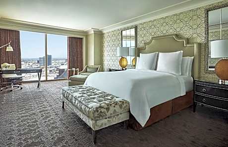 The rooms at Four Seasons Hotel Las Vegas boast floor-to-ceiling windows that frame breathtaking landscapes, alongside signature marble bathrooms and modern conveniences like flat-screen TVs and coffee makers. Each guestroom offers a haven of comfort, inviting guests to relax in style after a day of Las Vegas entertainment.