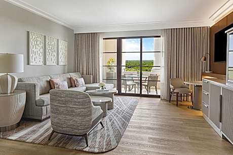 Guests can enjoy a variety of activities, from the Har-Tru tennis courts to the resort's championship golf course. The private water park features a lazy river, water slides, splash zone, family pool, and a complimentary kids camp. For those seeking a peaceful retreat, the Oasis adults-only pool offers an infinity-edge experience surrounded by palm trees and cabanas.