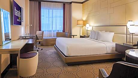 Featuring more than 175,000 square feet of casino space, this towering Atlantic City hotel is 7 minutes' drive from the Boardwalk. Guests at the Harrah’s Resort Atlantic City can dine at one of 11 restaurants and fine dining establishments such as Gordon Ramsay Steakhouse. Rooms at the Harrah’s Resort have large windows. A wake-up service and room service are available for guests. The hotel features an indoor 21+ over tropical pool with cabanas, which transforms to " The Pool After Dark" nightclub in the evenings. It also has a seasonal family pool that is located on the 4th floor of the Coastal Tower. The hotel is within a 15-minute drive of the Atlantic City Country Club and a 17-minute drive to the Seaview Golf Club in Galloway Indulge in relaxation and rejuvenation at The Spa at Harrah’s Resort. Choose from treatments, including massage, facials, and body scrubs. The spa also features a deluxe couple’s suite that features a private shower, hot tub and fireplace. Guests can also enjoy the spa’s “wet zones.” Relax in the steam room, sauna or the fireside hot tub pool. Plus, guests receive complimentary access to Harrah’s glass dome pool complex, located directly across from The Spa, on the day of services. The Spa at Harrah’s Resort also includes salon services such as hair design, make-up artistry and mani-pedis.