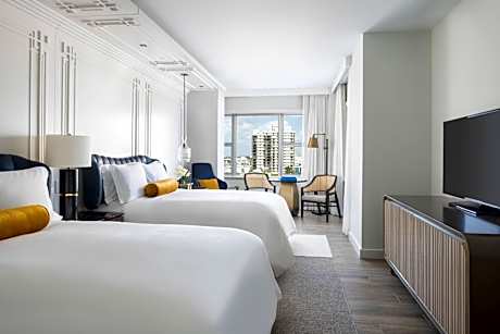 Located on the beach in the city’s Art Deco district, this 5-star hotel features a full-service spa and on-site dining with mezze-style restaurant and ocean-table cuisine. Rooms offer a mini-bar. The guest rooms at Ritz-Carlton South, Beach include a marble bathroom. A work desk and laptop safe are also provided. The outdoor pool overlooks the Atlantic Ocean and is surrounded by day beds. This Miami Beach hotel also has a 24-hour fitness center and a business center. An extensive cocktail list is available at Lapidus Bar. Other dining choices include a menu inspired by Turkish, Greek and Lebanese cuisines at Zaytinya and coastal favorite dishes at the beachfront DiLido Beach Club. The Ritz-Carlton, South Beach is 1.5 miles from the Bayshore Golf Course, and the Miami Beach Convention Center is less than 1 mile away. Miami International Airport is 12.2 miles from the hotel.