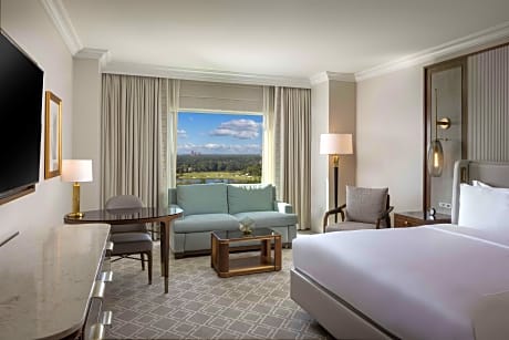 This Official Walt Disney World® Hotel is located on a 482-acre nature preserve, adjacent to the theme parks. Guests staying at Waldorf Astoria Orlando - An Official Walt Disney World Hotel can take advantage of 30-minute early entry, and free transportation to and from Disney parks. The resort features an 18-hole golf course, and full-service spa. A 55 -inch flat-screen TV comes standard in each bedroom at the Waldorf Astoria Orlando - An Official Walt Disney World Hotel. Other amenities include a marble soaking tub, separate shower, and luxury Esop toiletries. A mini-bar and an electronic safe suitable for laptops are included. Waldorf Astoria Orlando - An Official Walt Disney World Hotel features a kids' club, 2 swimming pools, a hot tub, and private cabanas. The Waldorf Astoria Spa offers massages, facials, Himalayan Salt therapies and salon services. The on-site golf club features 18 custom-designed holes. Dining is available at 11 on-site restaurants, and the hotel offers in-room dining. Options include an elegant lobby bar and an award-winning steakhouse. Universal Studios and SeaWorld theme parks are within 20 minutes' drive of the Waldorf Astoria in Orlando. Orlando Premium Outlets are 7.4 mi away, and the Orange County Convention Center is 11 mi away.